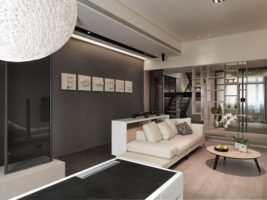 Основная нагрузка делается не на декор, а на цветовой контраст аскетических строений. Отделка фасада зачастую комбинирует в себе два цвета: черный – белый, красный – черный, серебристый – красный и т.д.
