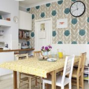 Комбинирование обоев с другими отделочными материалами давно и достаточно успешно используется при создании дизайн-проектов комнаты с самым разнообразным назначением. В прихожих и коридорах чаще всего можно встретить комбинирование обоев с настенными панелями. Обоями оклеивается верхняя часть стен, не подверженная механическому воздействию, влажности и другим неприятным факторам. В санузлах, прачечных, кухнях и столовых чаще всего оформляется так называемый фартук – поверхность с самым высоким уровнем риска загрязнения, воздействия высоких температур и влаги. Такие зоны облицовывают плиткой или мозаикой, настенными панелями, окрашивают или покрывают декоративной штукатуркой. Остальные поверхности можно оформить при помощи обоев.
