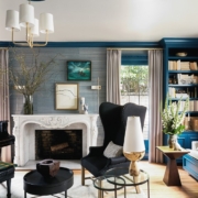 Еще один актуальный тренд – темная акцентная стена. Это могут быть как бархатные или велюровые обои в темном цвете, так и виниловые полотна с легким металлическим блеском. Очевидно одно – подобный дизайнерский прием позволяет привнести в интерьер не только нотки драматизма, но и налет изысканности, элегантности и роскоши.