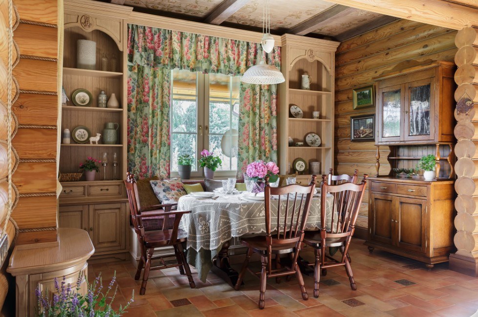 - Стиль рустик. Преобладание исключительно натуральных материалов, использование в обстановки деревянной мебели, уютный текстиль и необычный декор.