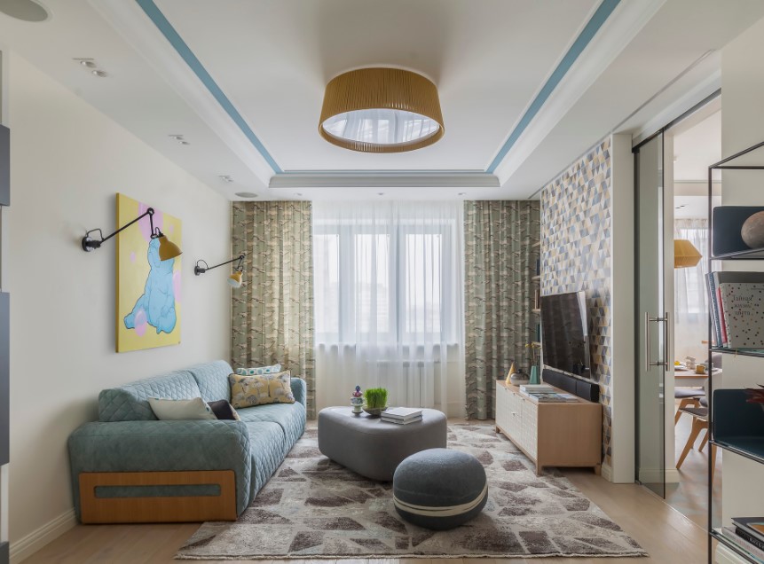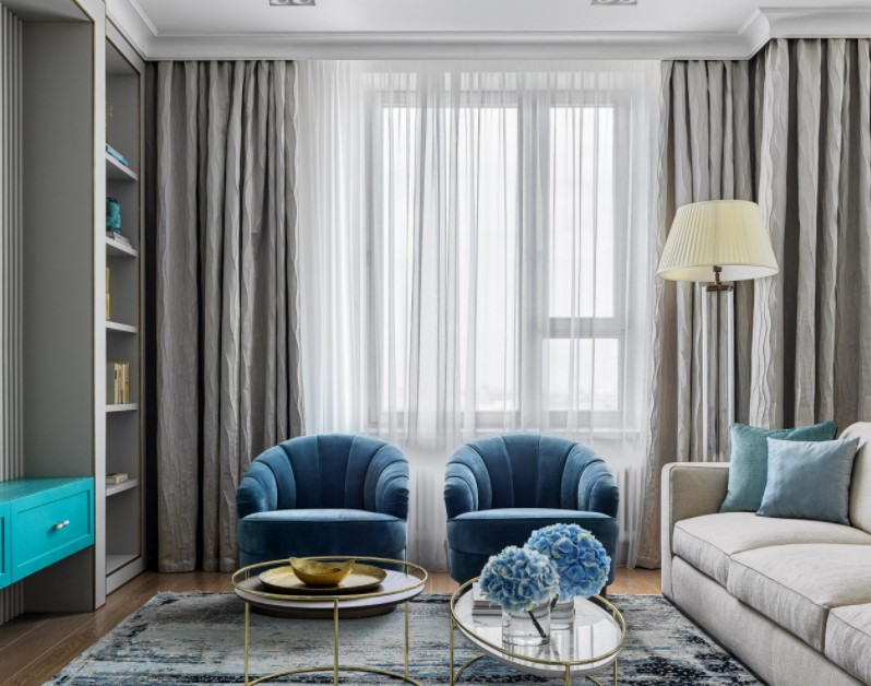 Для сбалансированного и стильного интерьера можно классически сочетать нейтральные цвета, такие как бежевый, молочно-белый, глубокий насыщенный синий с серым, или зеленый, яркий коралловый с полупрозрачным белым.