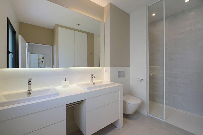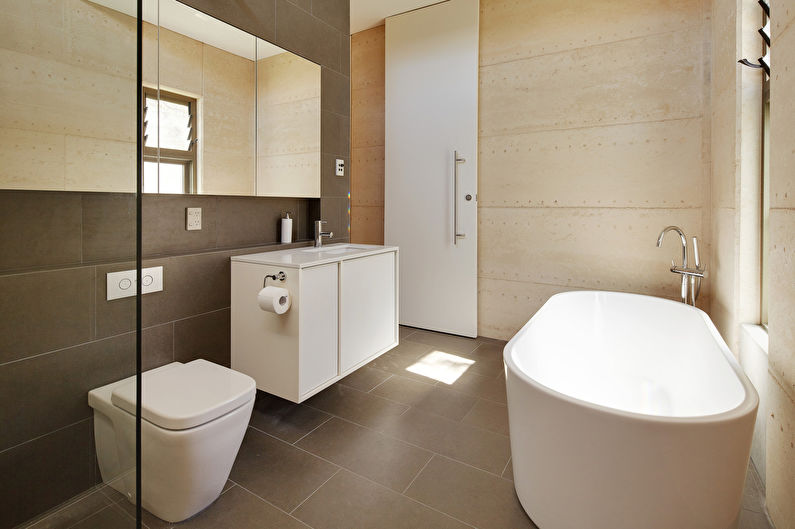 Минимализм имеет первостепенное значение в современной ванной комнате. Правило «меньше значит больше», продиктованное Людвигом Мисом ван дер Роэ, касается как стиля керамики, фурнитуры и мебели, так и сантехники в ванной комнате. Здесь нет предопределенных форм, потому что и прямоугольные унитазы, и овальные раковины будут хорошим решением. В данной области следует обратить первостепенное внимание на функциональность, связанную с легким удалением грязи, удобством эксплуатации, экономным использованием воды и технологическим прогрессом.