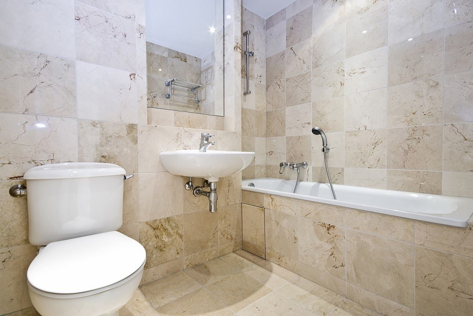 Во-первых, обратите внимание на размер. Макси-керамическая плитка, называемая XXL или широкоформатной с минимально возможной фугой, которая не делит пространство, сохранит ощущение простора даже в маленькой ванной, пользуясь неослабевающей популярностью.