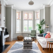 Во-первых, последовательная окраска стен и полов, а также ориентация на большой формат сделают интерьер образцом модернистского видения.