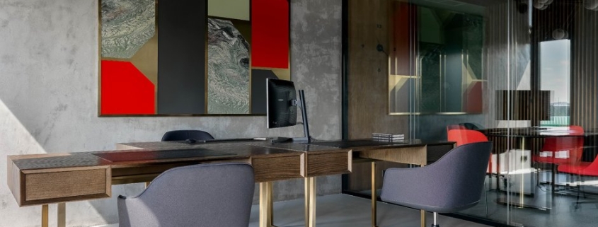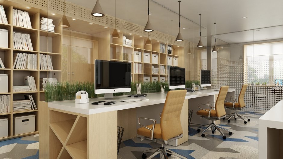 Очень важно, чтобы все было подобрано гармонично и максимально просто, ведь в офисе сотрудники находятся большее количество времени. А потому самочувствие людей на работе очень важно.
