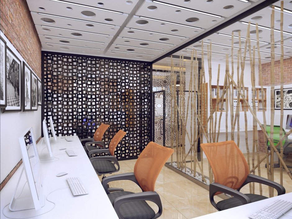 При оформлении японского стиля для офиса, следует учитывать некоторые индивидуальные потребности и потребности определенных наций. И самое главное в данном стиле: трудолюбие, целеустремленность и умение работать в команде. Рабочая зона оборудуется по японскому принципу% минимальное количество аксессуаров, а также строгие и сдержанные формы.