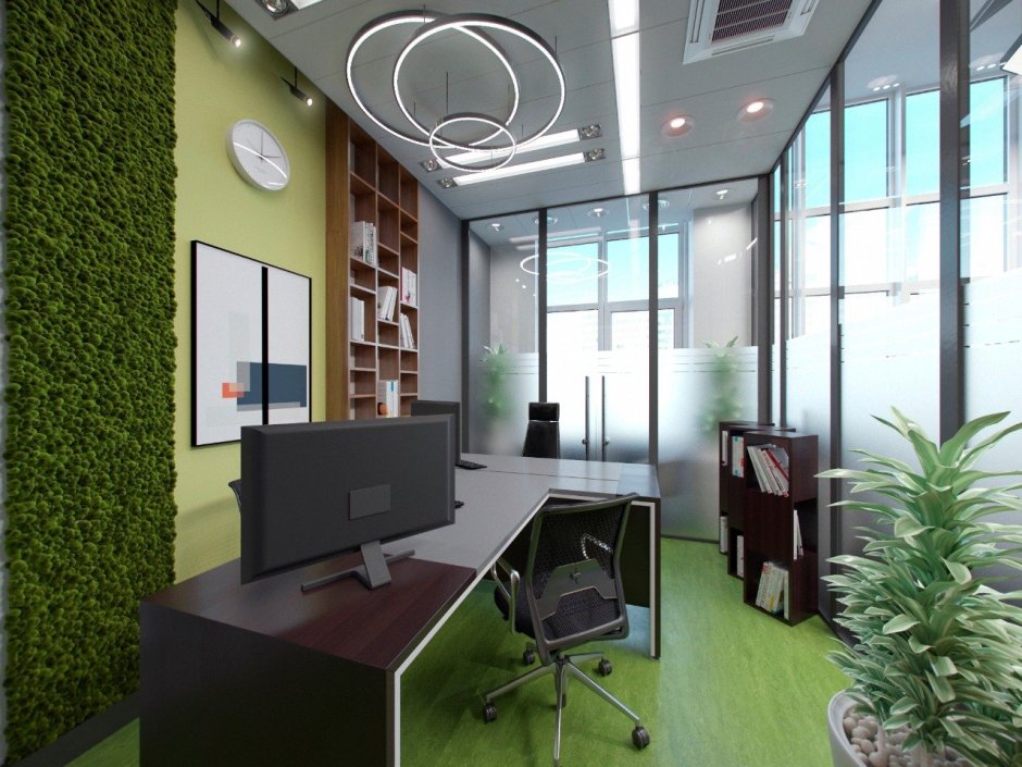 - Наличие «зеленых» помощников. Пусть это будут небольшие мало эмоциональные зеленые колючие кактусы, но это будут уже растения, которые помогут улучшить самочувствие и восприятие сотрудников в разы.