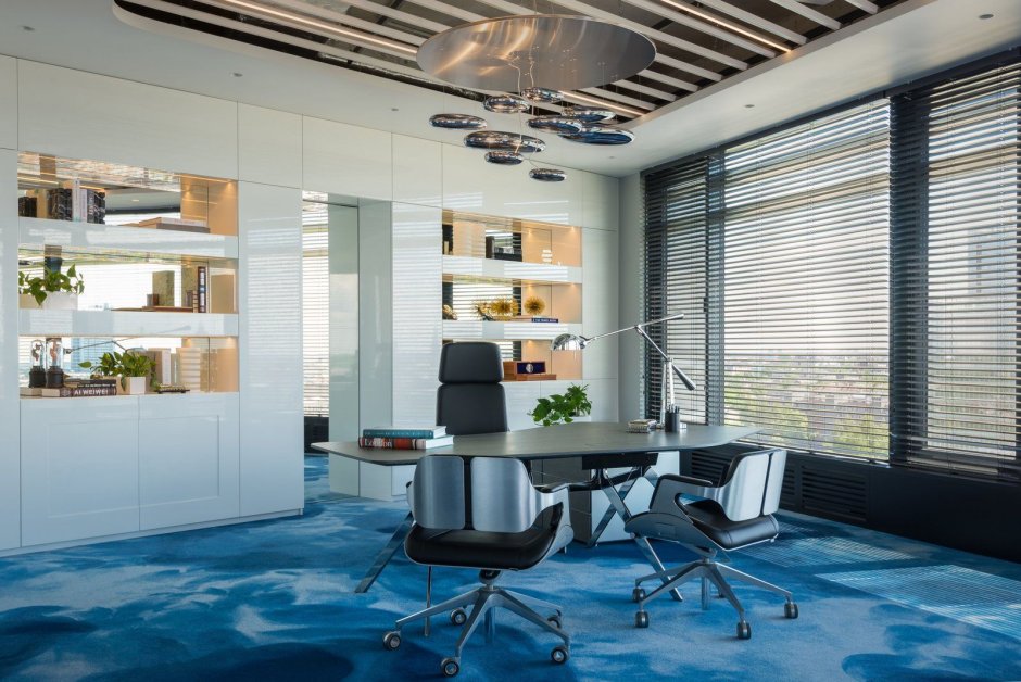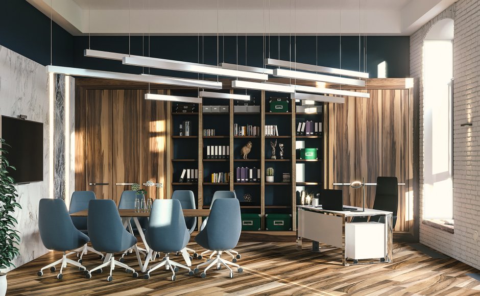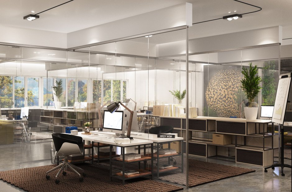 Переговорная, кабинет начальника, различные структурные кабинеты для отделов – все это расположено вне зоны общего человеческого внимания. Такой стиль больше относится к стилю хай-тек, а также прекрасно сочетается со стилем минимализма или же современного футуризма.