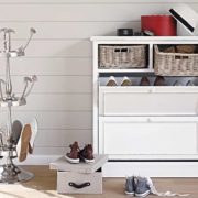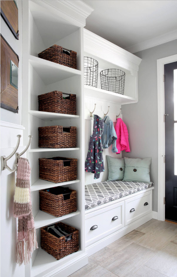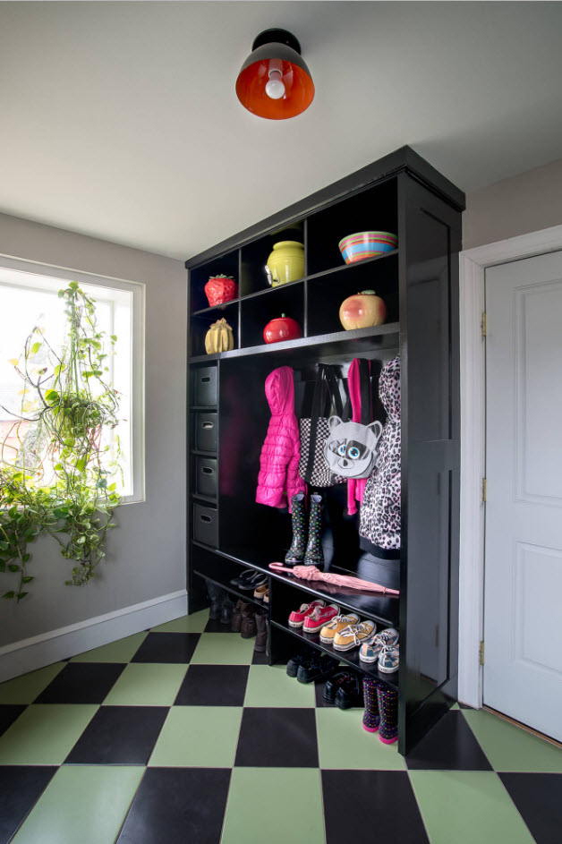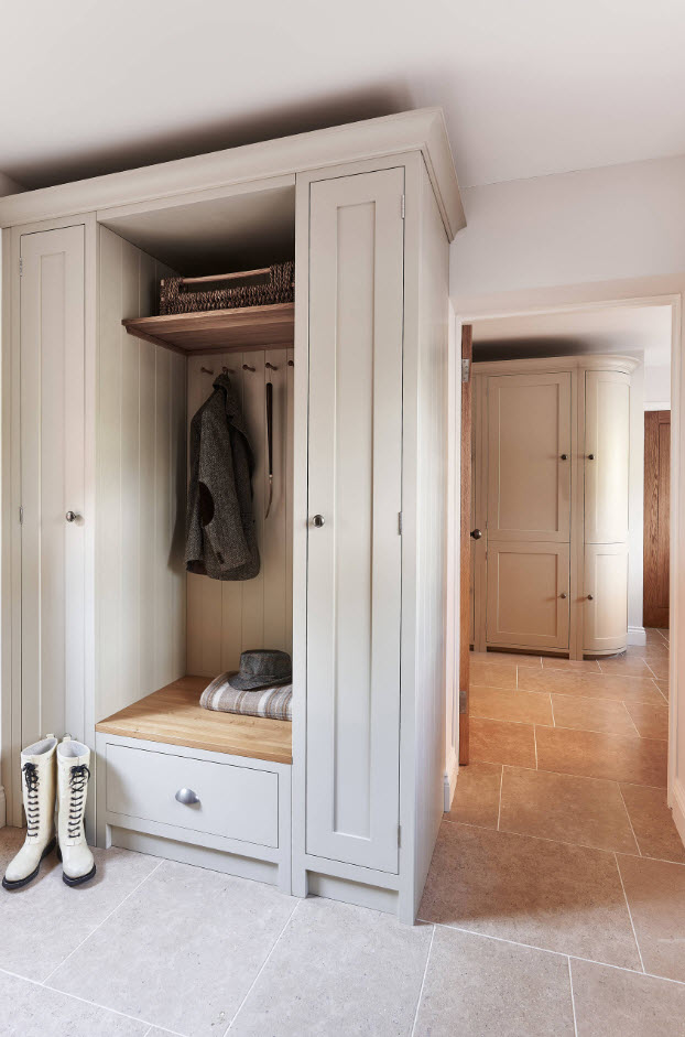 Сложно себе представить комфортабельную прихожую без систем хранения для верхней одежды, обуви, зонтов и других аксессуаров. Даже в небольшой прихожей, больше похожей на узкий коридор, можно встроить неглубокий шкаф с крючками для одежды. Для семейной пары, проживающей в квартире, достаточно будет компактного шкафа или пары крючков и обувницы. Для большой семьи необходимо большее количество систем хранения – встроенный шкаф от пола и до потолка поможет решить проблему хранения сезонной одежды и обуви, а также позволит держать под рукой необходимые в ежедневном употреблении аксессуары и приспособления – зонты, перчатки, спортивный инвентарь.