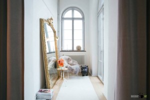 Даже в утилитарных помещениях домовладельцы, совместно с дизайнером, остаются верны концепции скандинавского стиля – белоснежная отделка вкупе с использованием натуральных материалов для придания интерьеру природной теплоты. Благодаря применению белого цвета и зеркал во всю стену – пространство небольшой ванной комнаты кажется еще больше, чем есть на самом деле.