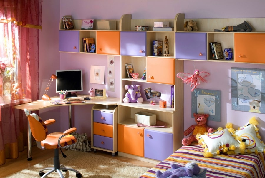 Если же одна комната предназначена для двоих детей, то каждому из них необходимо выделить свое пространство и укомплектовать собственной мебелью. Для двоих детей можно приобрести двухъярусную кровать. Это удобно и кроме того, позволяет сэкономить пространство в небольшой комнате. Если же пространство позволяет, то можно разделить его во всем. Это касается оттенков для оформления стен, цвета мебели и т.д. Такой вариант идеально подходит для разнополых детей, каждый из которых имеет собственные интересы. Что касается рабочего стола, то он может быть длинным для двоих детей. Альтернативным решением будет приобретение двух конструкций не слишком большого размера. Также очень важно учитывать увлечения каждого ребенка. Участникам соревнований и олимпиад определенно стоит выделить место для медалей и грамот.