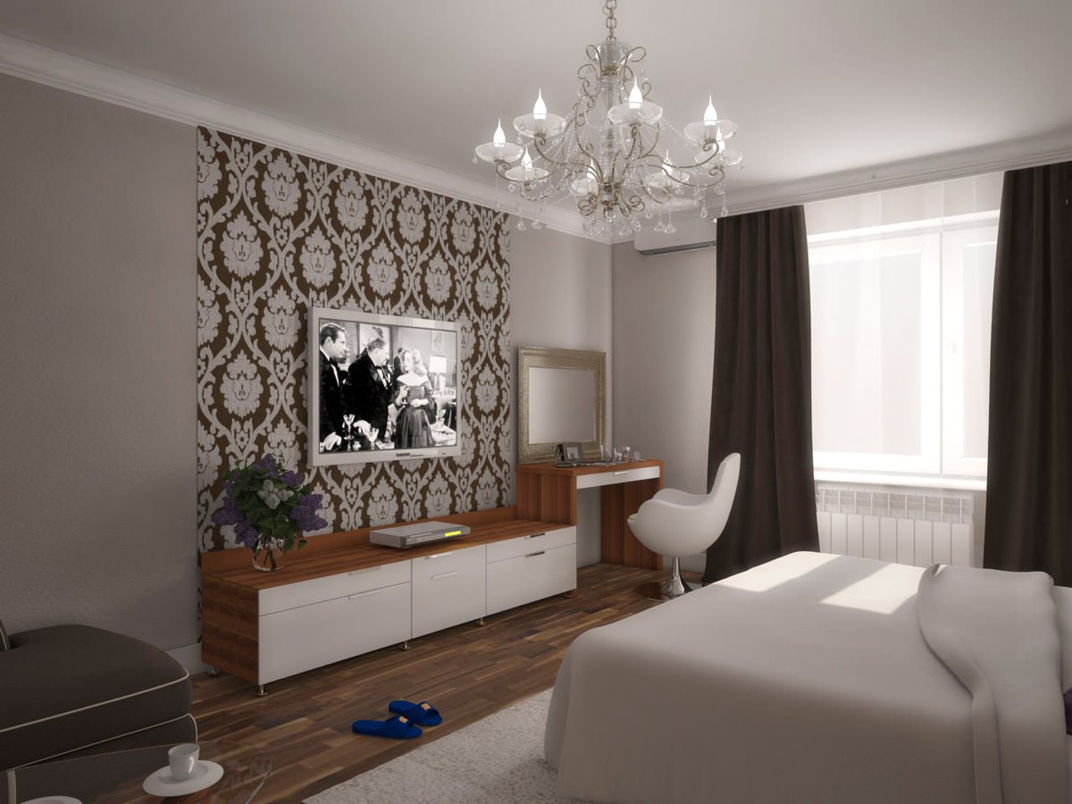 Гламурная спальня — отличное решение для привлекательной девушки, которая любит городскую жизнь. Для такой композиции вы можете выбрать практически любой цвет, который будет царить в интерьере, важно обогатить его многими мерцающими акцентами. Гламурный стеклянный стол вместо классической тумбочки, хрустальная люстра, большие зеркала в богатых рамах подойдут для модной спальни идеально, и все это не обязательно должно быть сделано из высококачественных материалов. Гламурный стиль удачно сочетает утонченный вкус.