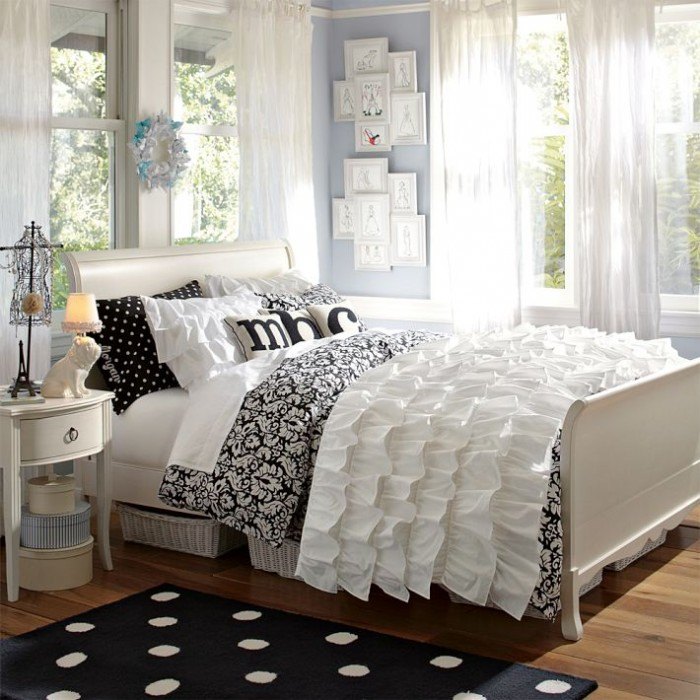 Различные аксессуары и безделушки завершают работу по созданию стильного интерьера. Они заставляют комнату принять характер и стиль. Чтобы сделать спальню для девушки по-настоящему уютной, положите в нее множество декоративных подушек и ковриков. Интересным решением будет поставить на кровать балдахин, который заставит почувствовать себя принцессой.
