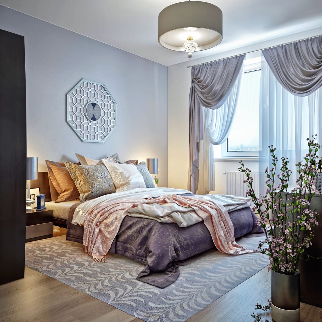 Не забудьте про картины и цветы, которые подчеркнут индивидуальность и сделают комнату более дружелюбной. Часы, лампы и свечи в одинаковой расцветке также могут выполнять декоративную функцию.