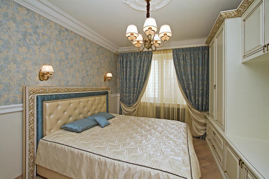 Освещение – его нужно обязательно учитывать, так как оно влияет на визуальное восприятие комнаты. Естественное освещение способно сделать комнату более просторной и светлой, а вот с помощью искусственного света можно зонировать пространство, расставлять правильные акценты. Если в спальной комнате достаточно света, то можно сделать интерьер в пастельных или холодных тонах.