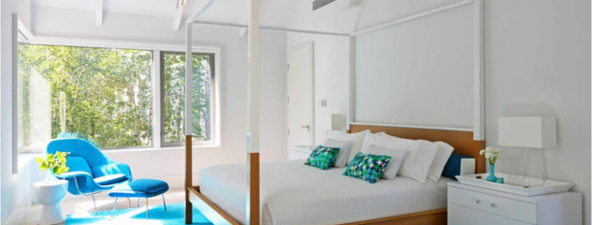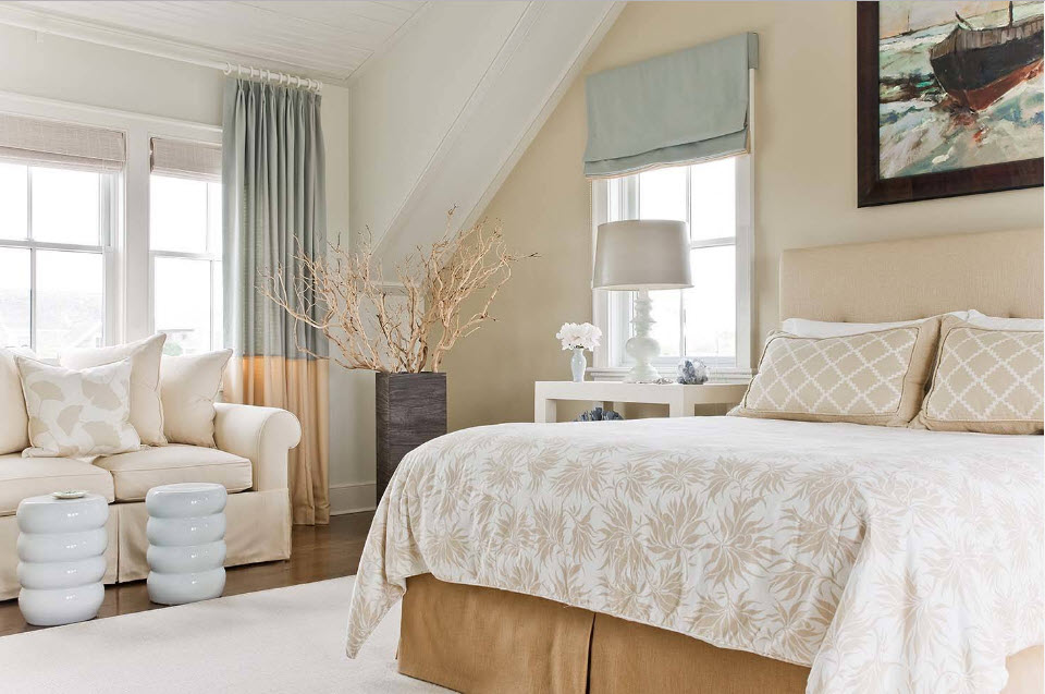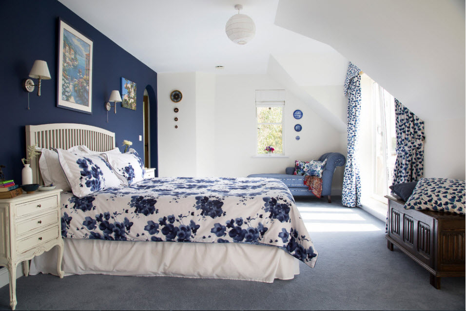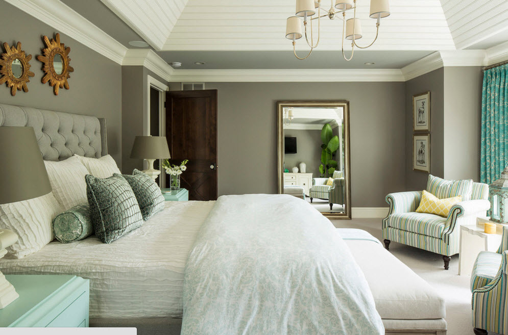 Первое, что нужно учитывать при подборе цветов – это габариты комнаты. Если комната очень маленькая, то лучше не использовать комбинацию двух цветов или же комбинировать светлые, пастельные тона. Также важно учитывать освещение помещения, его форму. Зонировать небольшую спальню трудно, скорее даже невозможно, но можно создать декоративный эффект и интересно разнообразить интерьер спальной комнаты.
