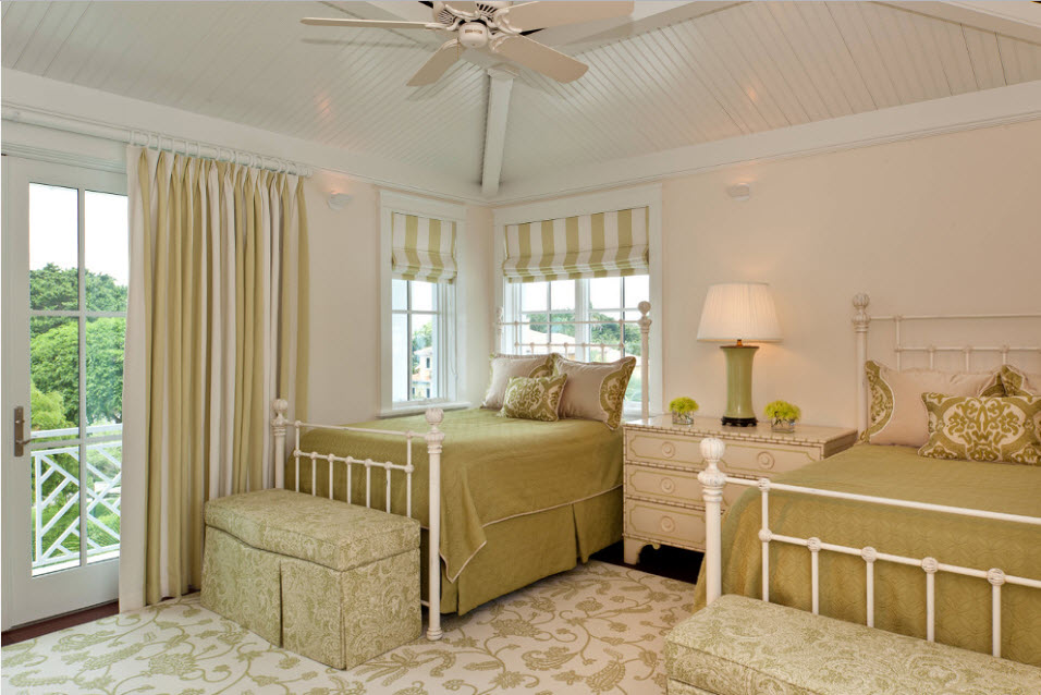 Разделив комнату вертикально можно визуально приподнять потолки, сделать спальную комнату немного выше, что создаст приятный для глаз эффект. Оптимальный вариант – чередование вертикальных полос одинакового размера.