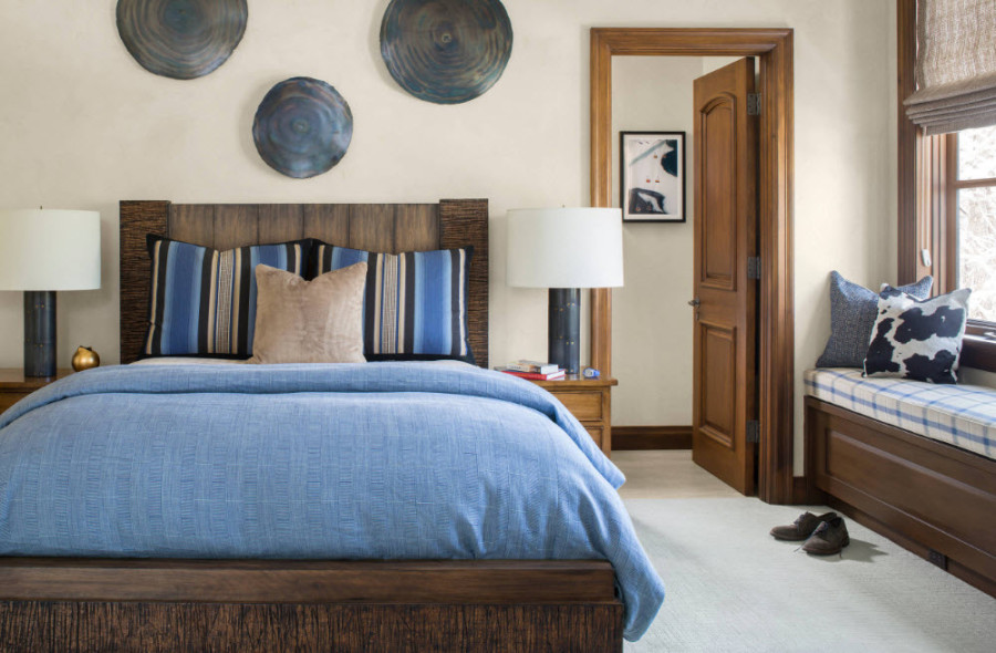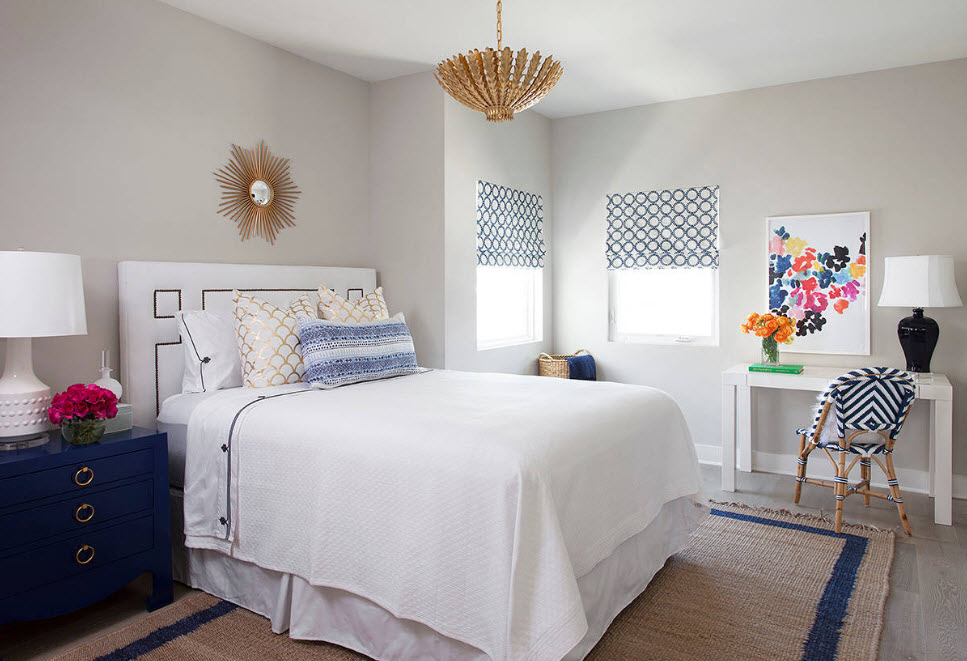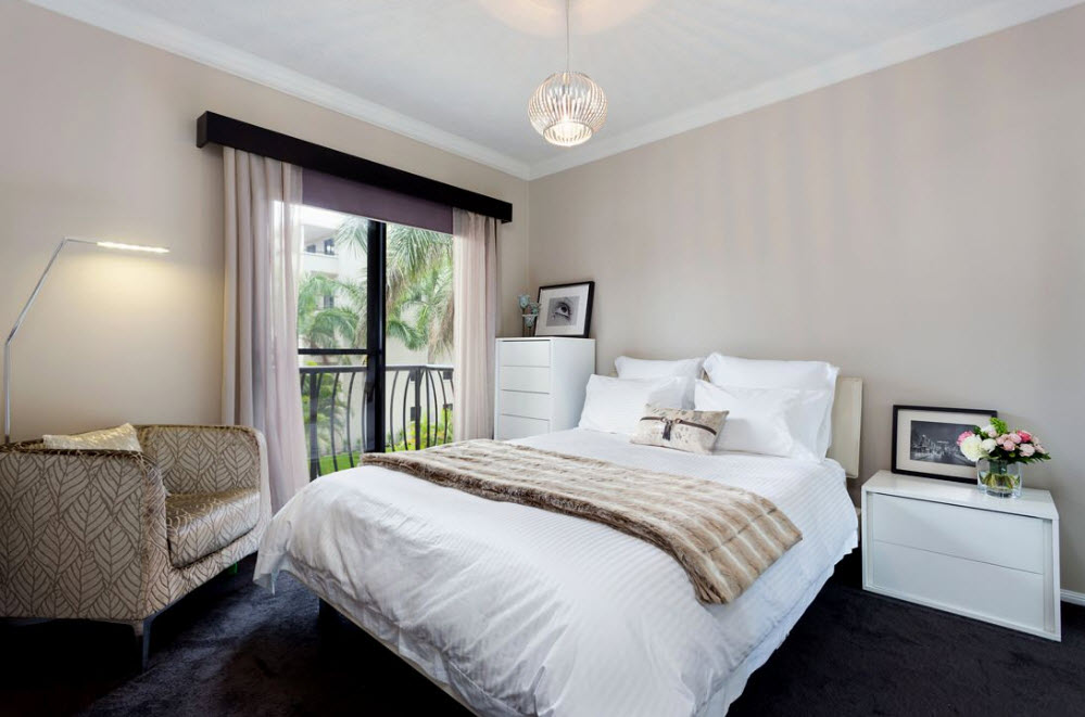 В светлой спальне с нейтральным выбором цветов для отделки и меблировки, текстиль может стать единственным ярким пятном. Это один из самых простых и недорогих способов привнесения цветового разнообразия в интерьер помещения. Колоритный рисунок на ткани будет несложно заменить, если яркость надоест. Меняя цвет и принт текстиля, вы можете создавать различные настроения самого помещения.