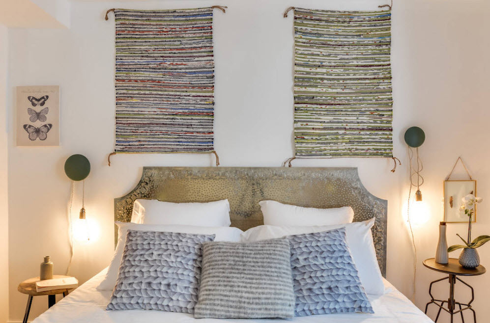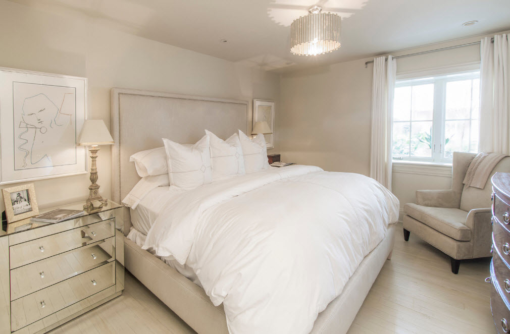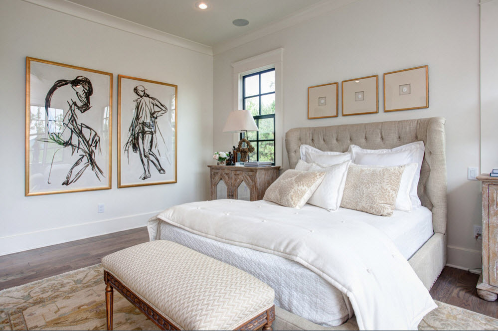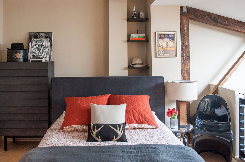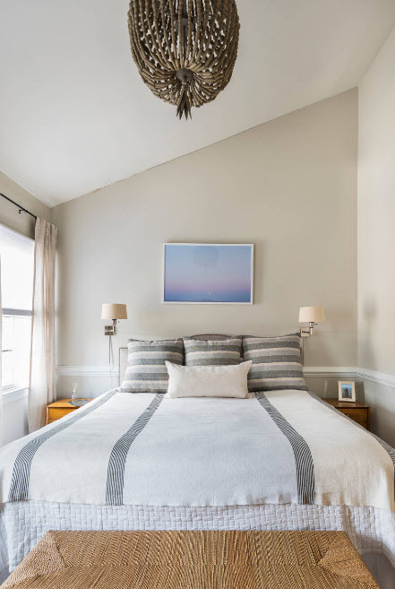 Но, согласитесь, что абсолютно светлая спальня – это скучновато и неоригинально. Для тех, кто хотел бы сохранить нейтральность палитры в целом, но привнести некоторое разнообразие в цветовую гамму локально, можно предложить дизайнерский прием, которым уже многие годы пользуются домовладельцы по всему миру – применение акцентной поверхности за изголовьем кровати. Даже очень яркое оформление акцентной стены не станет раздражающим фактором, ведь вы не будете акцентировать внимание на стене, расположенной за изголовьем кровати, во время подготовки ко сну, когда так важно расслабиться, очистить мысли и успокоиться.