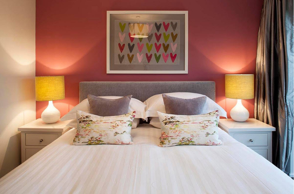 Один из наиболее простых и беспроигрышных вариантов отделки стен в спальне средних размеров – покраска. Безусловно, этот вид отделки подходит только для предварительно выровненных поверхностей. Светлые, пастельные тона в отделке стен создадут не только благоприятную, расслабляющую атмосферу, но и станут отличным фоном для настенного декора.