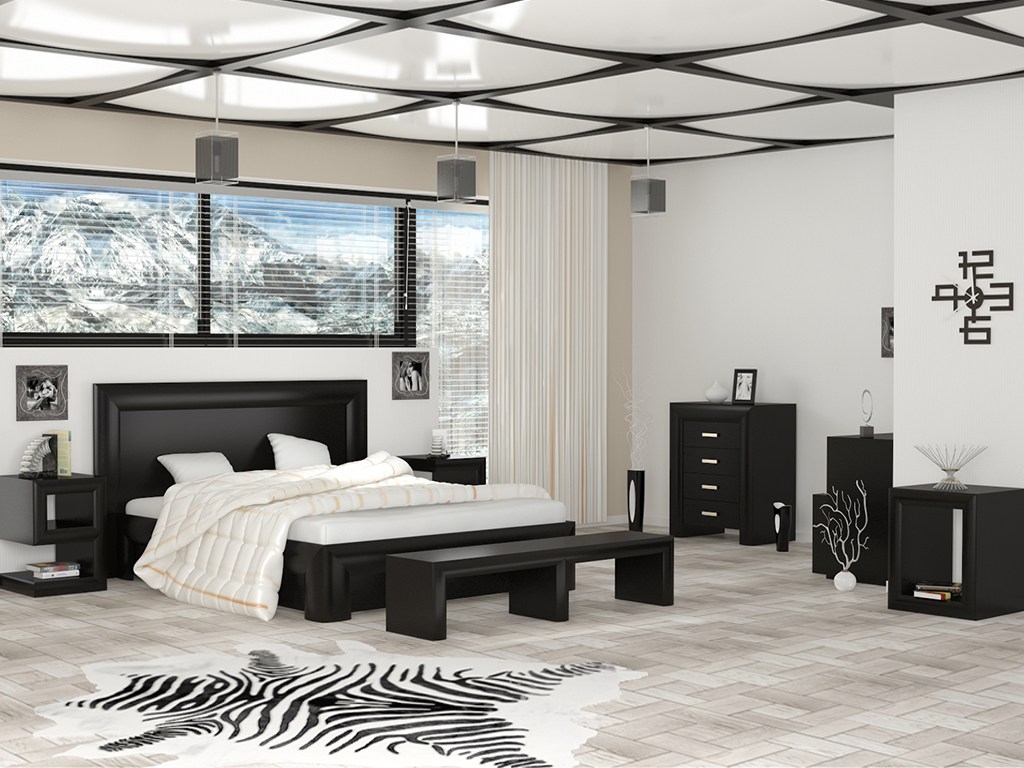 - Кровать обязательно должна быть низкой, и иметь четкую прямоугольную форму. А также можно иметь встроенные шкафы, которые помогут убрать все спальные принадлежности.