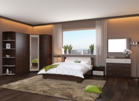 В японских интерьерах нет места для искусственных материалов или синтетических тканей. В главных ролях дерево, бамбук и элементы из рисовой бумаги. Мебель в японском стиле невысокая и без отделки. Большинство моделей могут похвастаться геометрическими и тонкой формами. Стоит выбрать для интерьера спальни простую деревянную кровать, которая будет соответствовать стилю традиционных японских аранжировок. В дополнение к этому, будут также отлично смотреться низкие, простые прикроватные тумбочки и вместительный шкаф, но обязательно со светлыми раздвижными дверями.