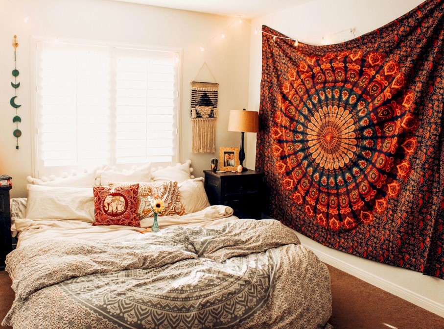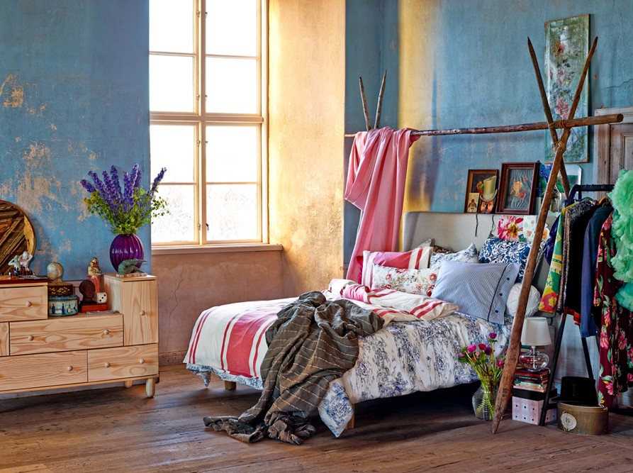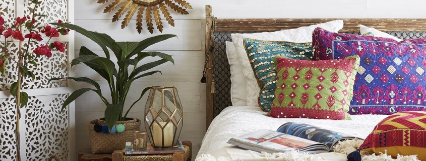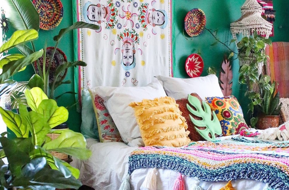 Колоритная этника дарит гармонию, эстетическое наслаждение и покой. А разнообразие принтов и фактур только улучшит Ваш спальный бохо-интерьер. Еще один характерный признак бохо-акцентов – это яркие, насыщенные, сочные цвета и оттенки: малина, фуксия, терракот, изумруд, небесно-синий.