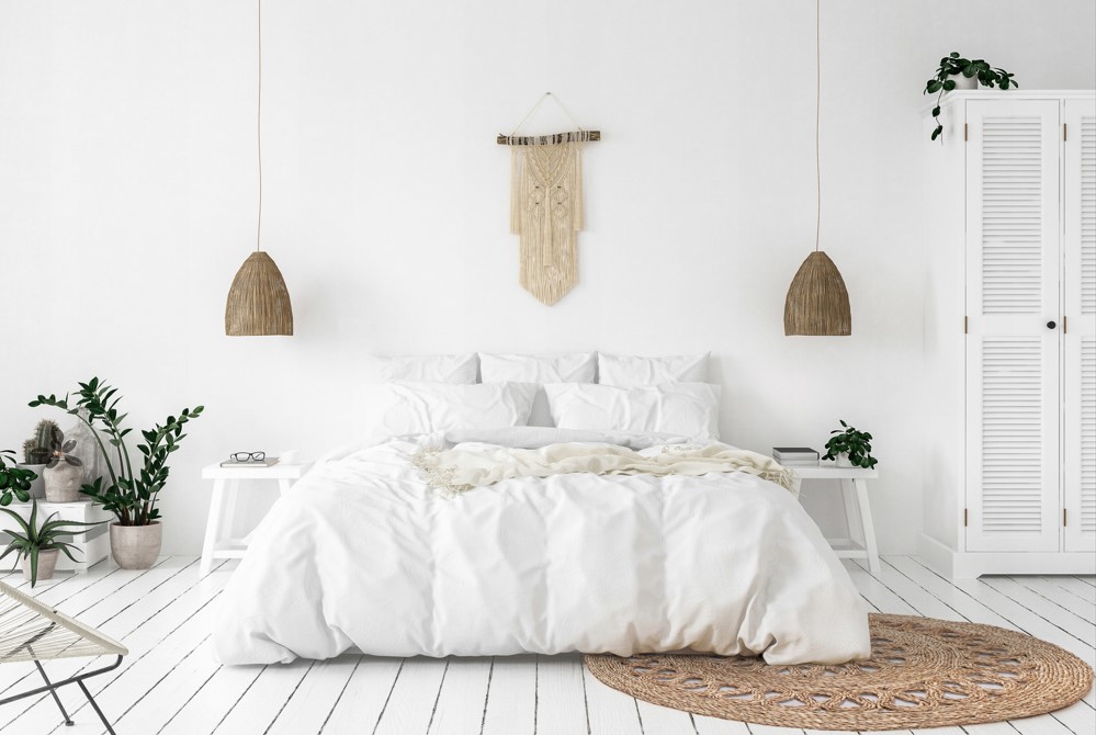 Одной из самых главных составляющих уникального креативного стиля бохо в спальной комнате является декор, сделанный своим руками. Связанные вручную пледы, старательно сшитые в технике пэчворк, покрывала, украшения-макраме, плетеные абажуры и корзинки, керамические статуэтки и кашпо – весь этот хенд-мэйд декор помогает сделать спальный интерьер особенным, индивидуальным, отражающим Ваше мировоззрение и увлечения. При изготовлении такого декора, в абсолютном большинстве случаев, используются натуральные качественные материалы, что немаловажно.