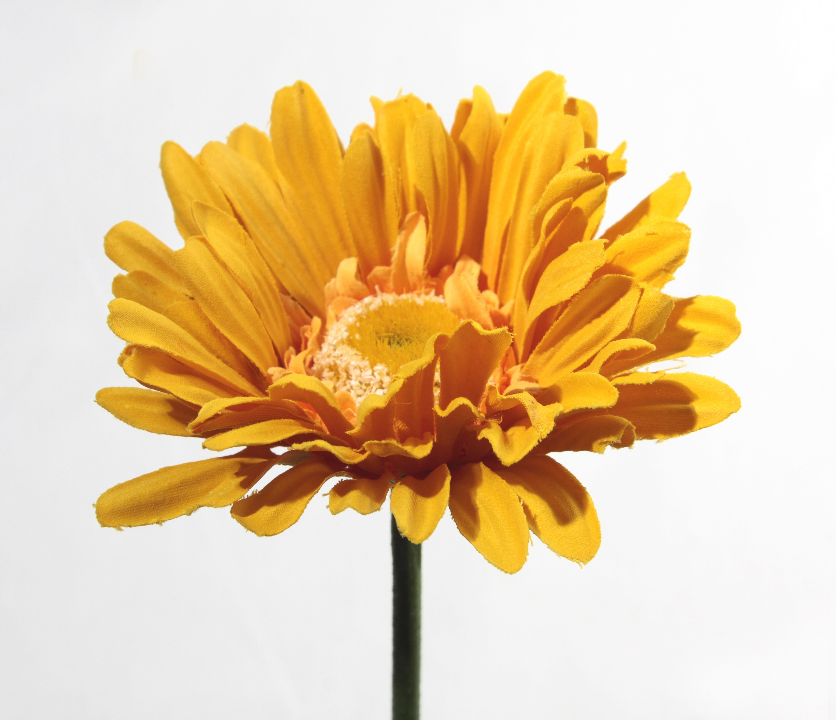 Цветонос полностью лишен листьев и вырастает до 80 см. Диаметр цветков находится в пределах 15 см. Существуют сорта с махровыми лепестками и с простыми. При этом простую герберу можно сравнить с ромашкой, а махровую с астрой. В качестве плода на герберах созревает семянка.