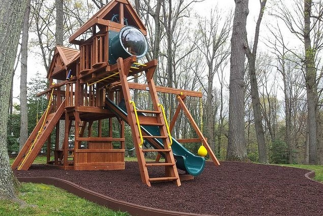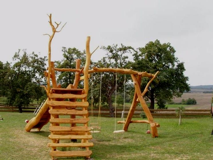 В случае домашних игровых площадок лучшим решением будет деревянное устройство из ели. Однако не забывайте о его пропитке. Естественный материал, такой как дерево, идеально вписывается в ландшафт сада, в отличие от металла или пластика.