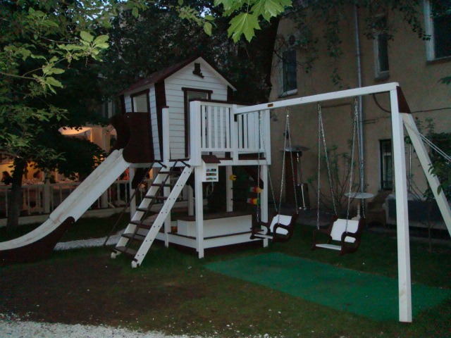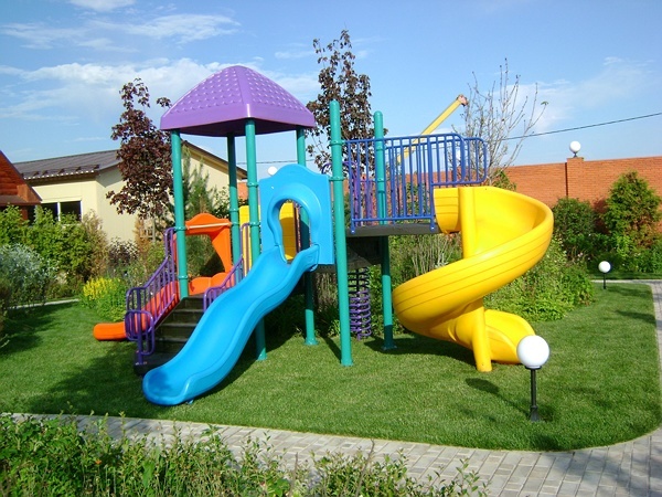 - Горка с домом — более сложная игровая площадка, но весьма интересная.