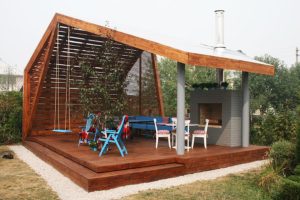 - Деревянный или пластиковый дом — прекрасное место для игры под бдительным оком родителей.