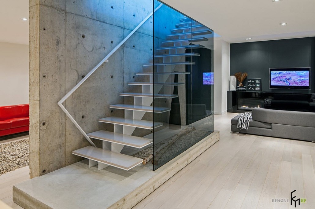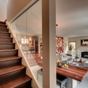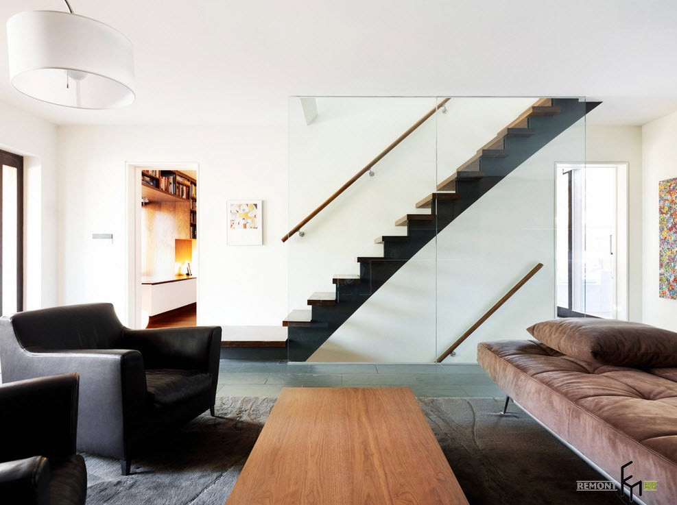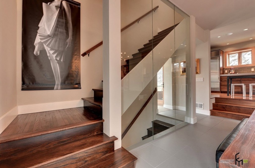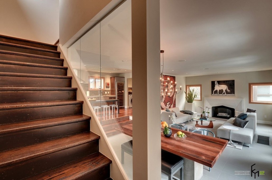 Говоря о конструкции, перегородка из стекла может быть использована в качестве ширмы или раздвижной двери или же служить декоративным элементом где-то вдоль лестница на второй этаж частного дома.