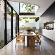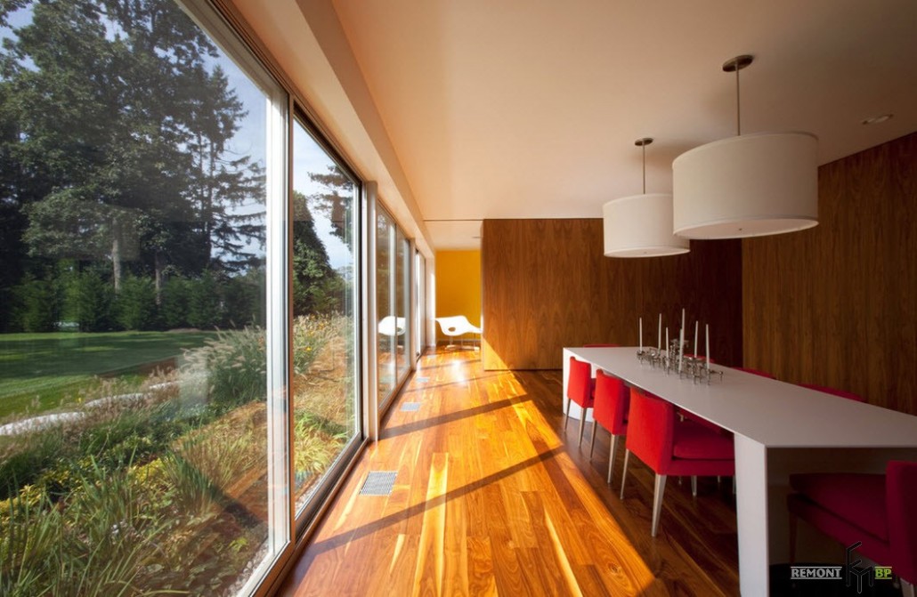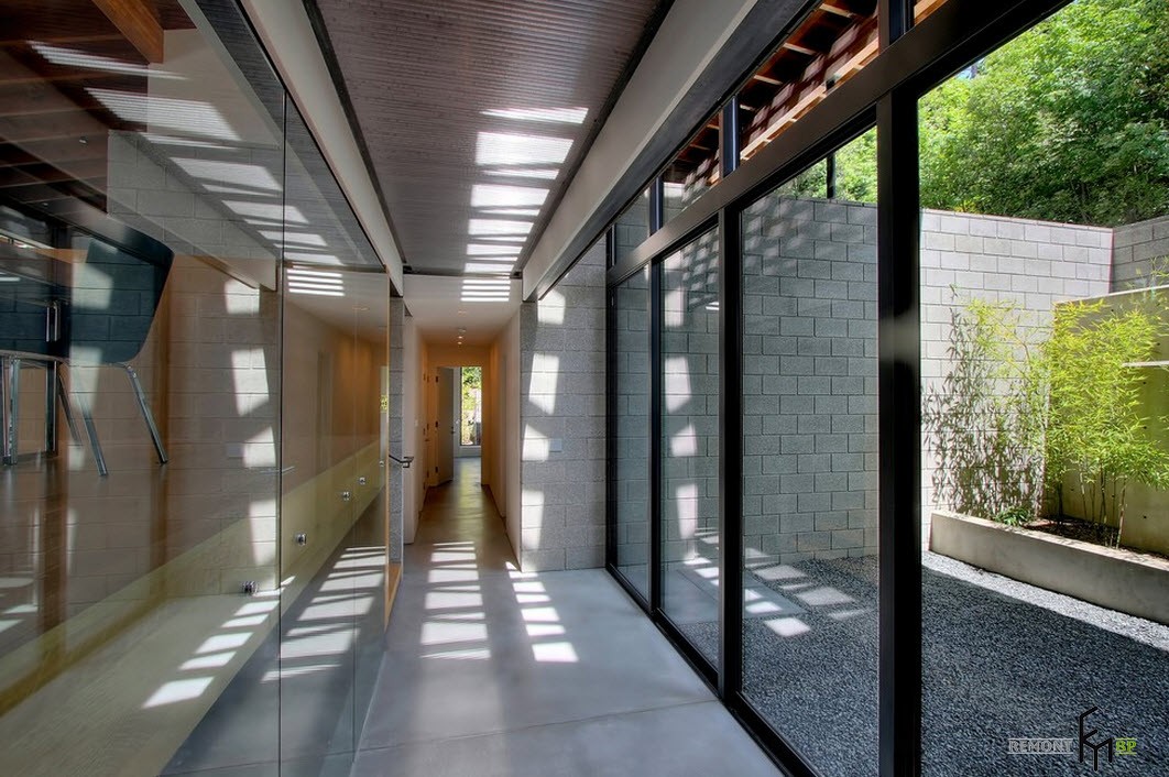 Согласитесь, дом со стеклянной стеной в качестве перегородки для разделения комнаты на зоны или огромная прозрачная стены, выходящая на задний двор с оригинально обустроенным ландшафтом никого не оставит равнодушным.