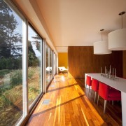 Что может добавить в пространство большей легкости, чем прозрачные стены? Пожалуй, только яркое солнце, лучи которого озаряют всю комнаты, проходя сквозь эту прозрачную конструкцию.