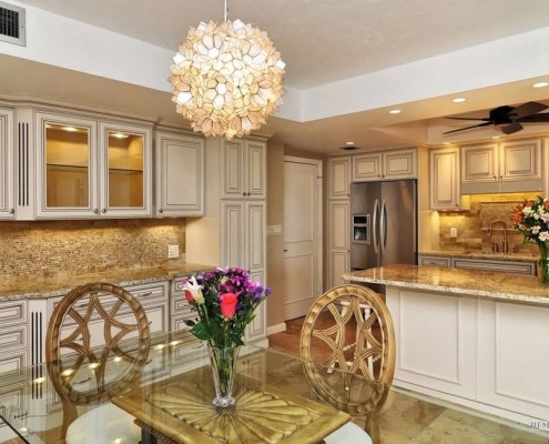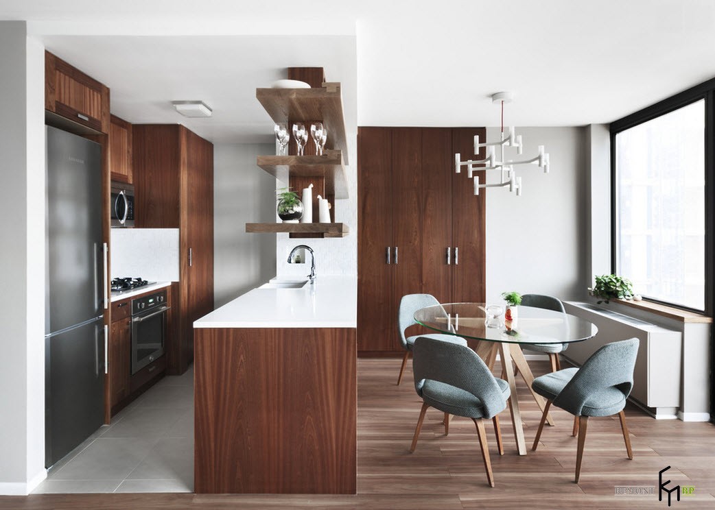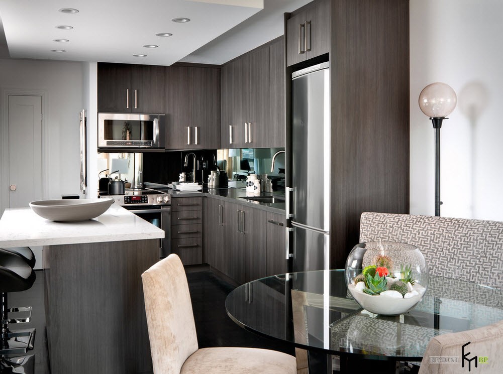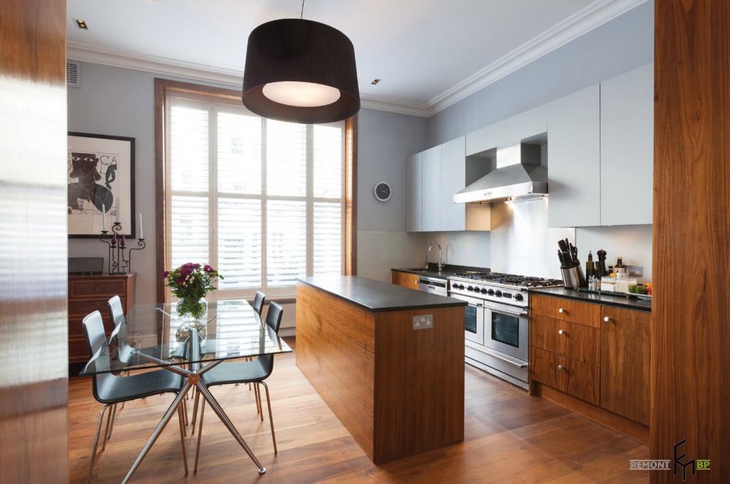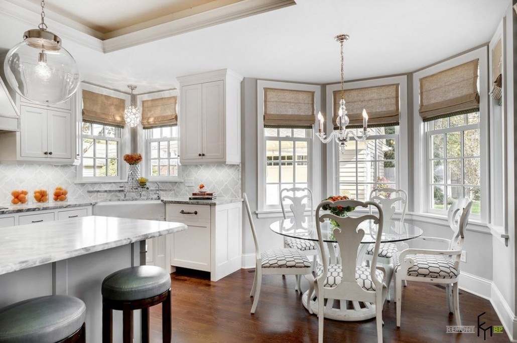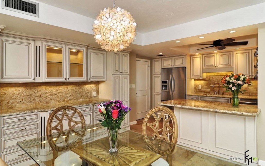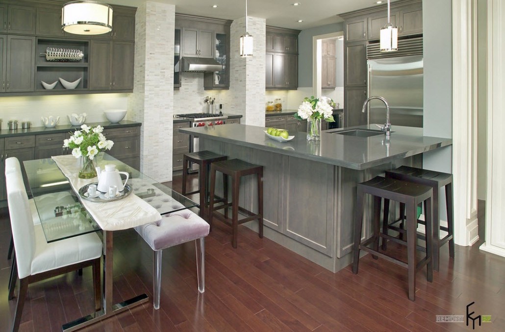 Так, при наличии деревянных элементов лучше подтвердить идею дублированием материала, воплощенного в деталях креслах. Массивные опоры и деревянное подстолье – сюжет для убежденных «классиков». Столешница в такой же раме подчеркнет стиль и блогородство материала. Группа стульев от Ильфа и Петрова закончит кухонную инсталляцию. «Экспозиция» приживется и в других роскошных дизайнах. Цветастая обивка гобелена или мебельная ткань с серебром шинилловых полос умножат впечатления раза в два за счет отражения блестящих вставок.