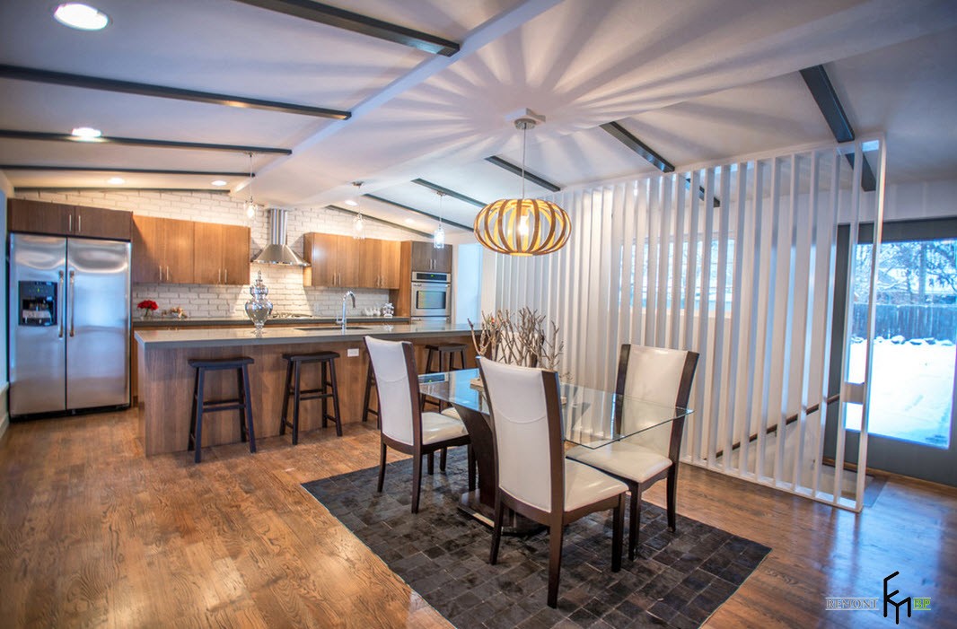 Популярность барных стоек привела к интересным экспериментом в ее оформлении, и высокие стулья заняли место табуретов и привычных сидений. Длинную плоскость удачно дополнят версии из цветного термопластика, со смешаным дизайном стекла и металла, дерева и кожи. При этом конфигурация сиденья варьируется от круглой до фигурной