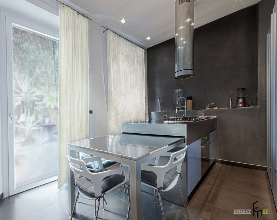 - В пространстве хай-тека органично пропишется комплект незамысловатой формы из металла с ограниченной цветовой доминантой.