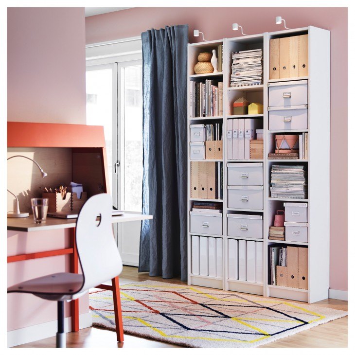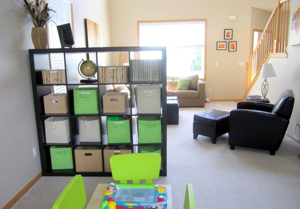 Не менее часто стеллаж выбирают для детской комнаты. В данном случае он выполняет более функциональную роль. То есть его можно использовать для хранения одежды, игрушек и других необходимых вещей. Лучше всего для этого приобрести пластиковые контейнеры или плетеные корзинки. Такое оформление смотрится очень красиво и современно.