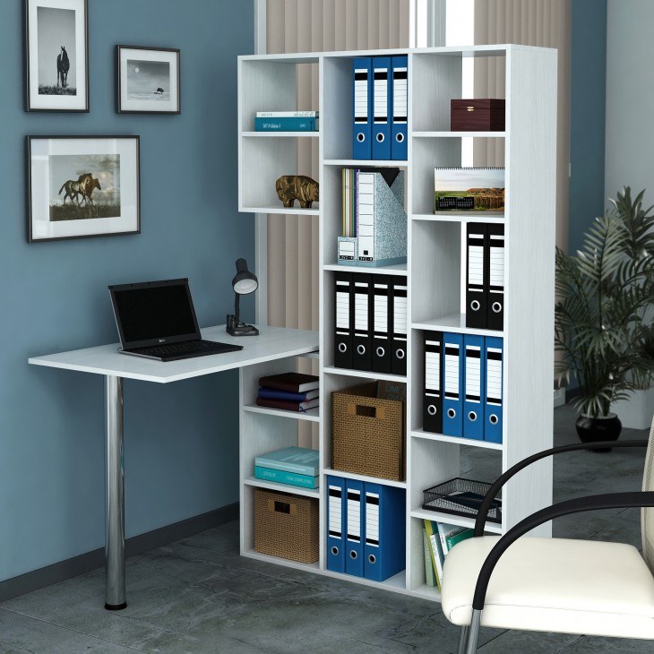 Также отметим, что стеллажи могут быть абсолютно разными по форме. Благодаря этому можно подобрать наиболее подходящий вариант именно для вашего типа помещения. Но при желании можно сделать стеллаж самостоятельно. В таком случае вы точно будете уверены в том, что конструкция идеально впишется в интерьер.