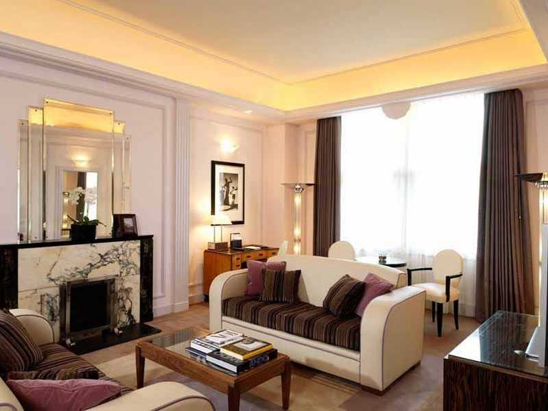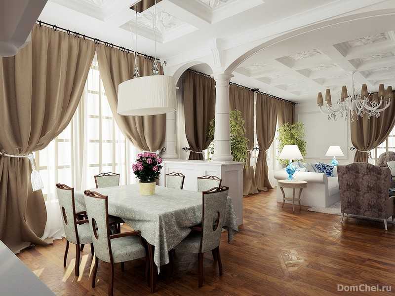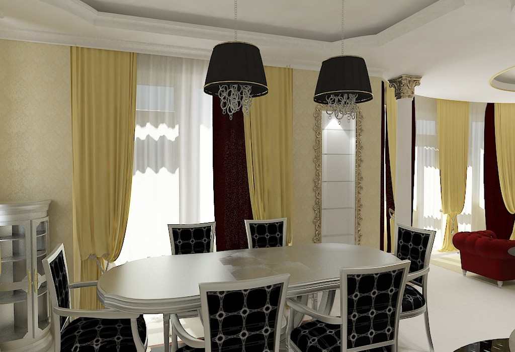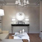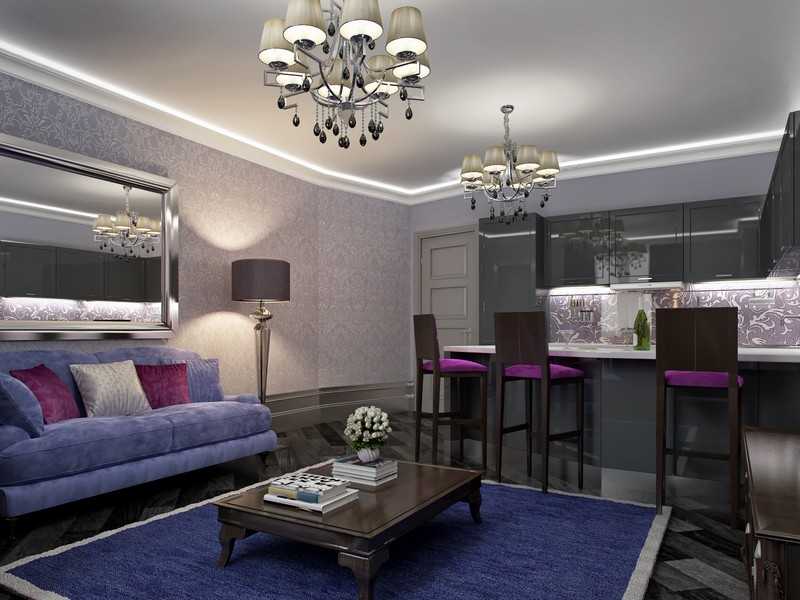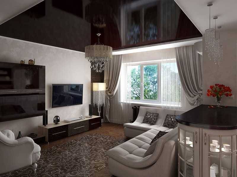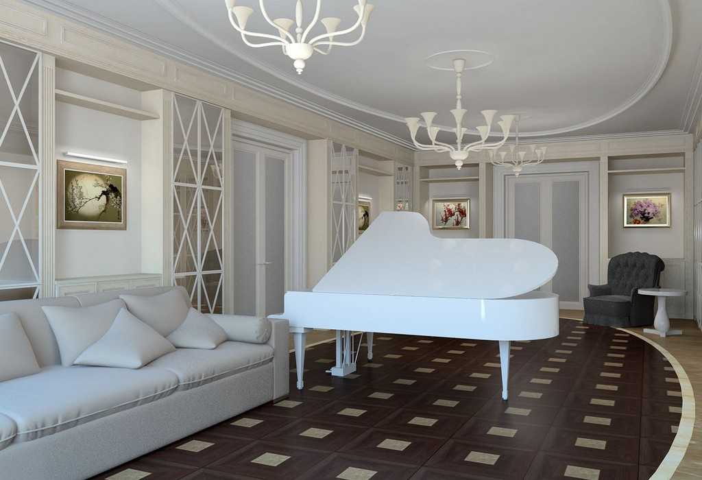 Относительно цветовой гаммы – преобладание темных оттенков, однако, допускается коричнево-бежевая гамма, создающая особое благородство интерьера. Но что касается пестрых цветов – это неприемлемо. Наиболее выигрышный эффект дает обыгрывание монотонной насыщенности в сочетании с контрастным рисунком. Особо приветствуется использование в гостиной инкрустированных стеклянных поверхностей, начищенного до блеска металла, а также полированного дерева, т.к. все эти атрибуты усиливают впечатление роскоши и благородства.