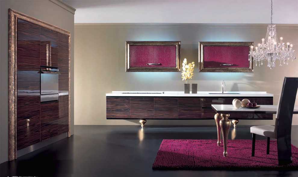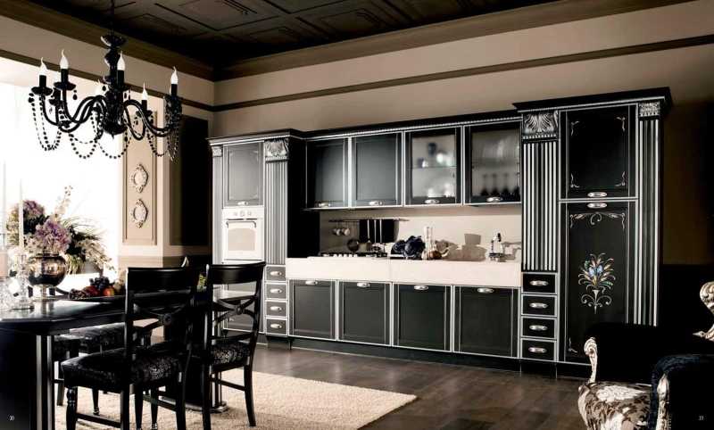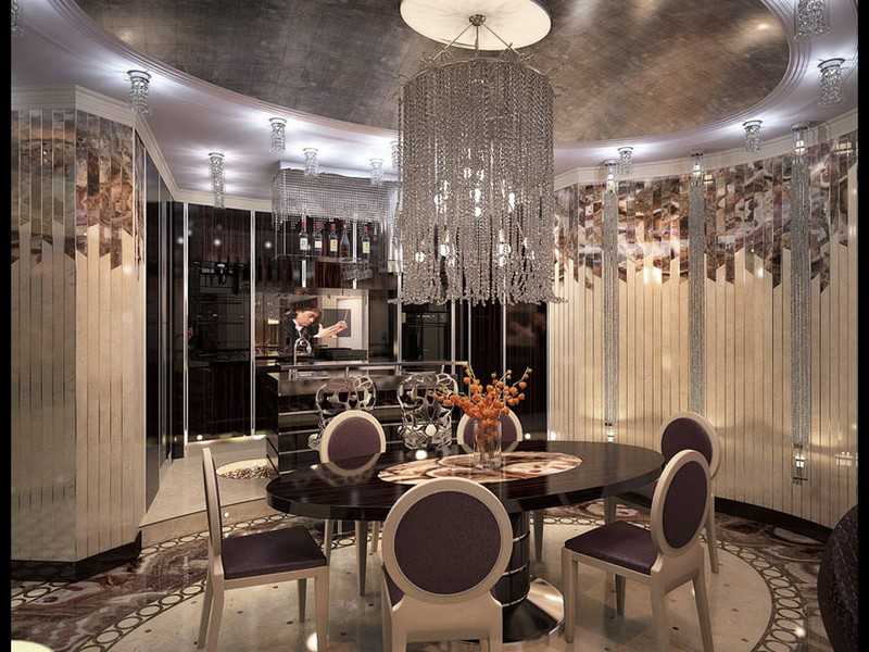 А теперь самое главное, так сказать, изюминка кухни Арт-Деко – непременно должно в ней присутствовать что-то такое, что сразу привлекало бы внимание (эксклюзивная ваза, бронзовая статуэтка, серебряные подсвечники или, например, картина). Необходимо тщательно продумать и выбрать какой-то один из элементов, способный вызвать удивление и восторг, будь то зеркало или люстра.