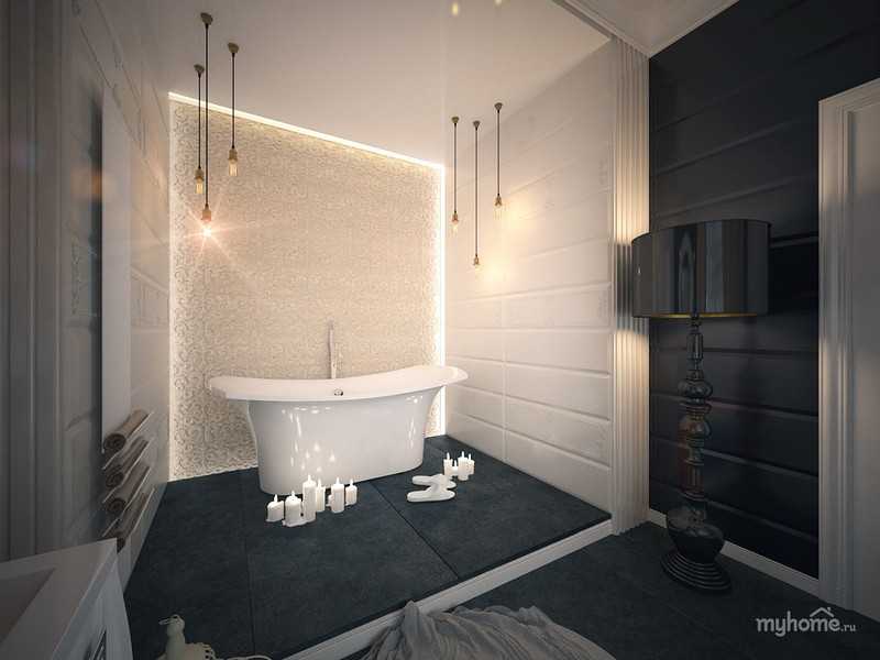 Отдельно следует обратить внимание на инсталляцию под шкафы низа раковины и ванны. Таким образом, помимо оригинального внешнего вида, приобретается и практичность – прекрасно выкраивается пространство для хранения всевозможных необходимых вещей, а также моющих средств. Кроме всего прочего, облицовка низа ванны создаст эффект бассейна, относительно стен – эффект подиума.