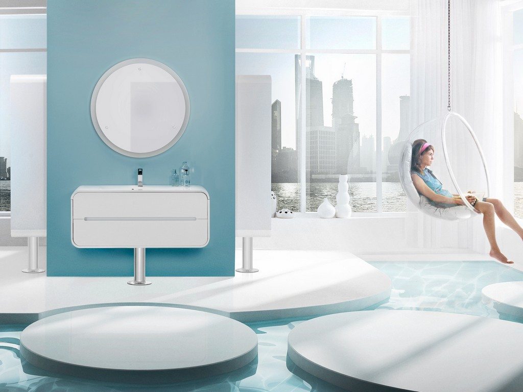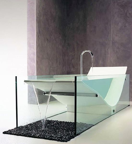 Соблюдение необычных технических, а также индустриальных мотивов привносит оригинальность и некоторую свежесть в ванную, поэтому можно уверенно заявить о том, что Хай-тек пропагандирует эфемерную эстетику материала в совокупности с использованием высочайших технологий. Примечательно, что данный стиль оформления ванных комнат тесно переплетается со стилем ар-деко, модерном и минимализмом. Важно, чтобы помещение ванной соответствовало законам симметрии, имело ровные линии, формы или же прямые углы.