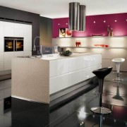 Обычно мебель имеет однотонную окраску или с преобладанием двух цветов. Кухонная мебель, выполненная в Хай-тек, ни в коем случае не терпит дробления общего представления картины или чрезмерной детализации. Ни одного лишнего декора и высокая функциональность интерьера кухни – основополагающий принцип такого стиля.