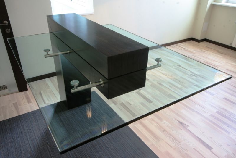 К типичным составляющим кухонной мебели относятся не только стеклянные фасады шкафов и буфетов, но и обеденные столы их прозрачного или тонированного стекла. Особенно эффектно такие столешницы сочетаются с металлическими ножками. Стиль под названием Хай-тек полностью придерживается замысла искусственного преобразования интерьера. Причем любителям природы он вряд ли придется по душе, поскольку данный стиль максимально отдален от природных образов.