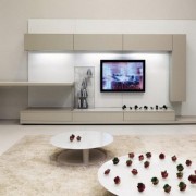 Говоря о мебели, то в большей степени важно ее оформление: приветствуется использование светлых тонов и ламинирования – в гостиную прекрасно впишутся небольшие стенки, тумбы или полки с глянцевым блеском. Некоторая часть корпусной мебели может быть выполнена с применением особо прочного стекла и хромированных деталей. Мягкая мебель имеет преимущественно однотонную обивку, причем она может быть как тканевой, так и кожаной. Стулья или кресла могут быть изготовлены из пластика (в том числе прозрачного). Отличным декором гостиной в Хай-тек может стать интересное кресло необычной формы или оригинальный журнальный столик.