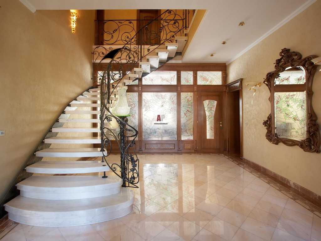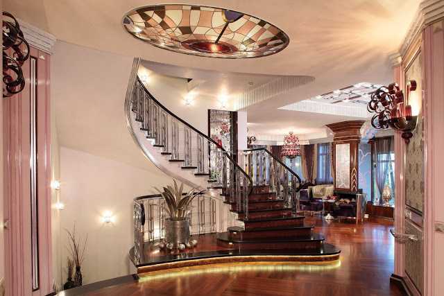 При оформлении интерьера в стиле модерн для прихожей, из-за недостатка в площади, основной декоративный элемент – это двери. Мягкие изгибы, цветные стеклянные вставки и дверные ручки ручной работы должны быть основным ярким акцентом.