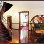 Дерево – один из основных материалов для воссоздания классического интерьера, соответствующего основным требованиям архитектурного стиля модерн. Оно может использоваться не только как напольное покрытие, но и как основной декоративный материал. Поскольку обработанное дерево имеет цветовую гамму, максимально удовлетворяющую требования данного вида интерьера, то при оформлении используются все виды древесины различной степени обработки. Темное дерево в большом количестве используется в интерьере с преимущественно светлыми цветами пепельных и холодных оттенков, придавая общей картинке интерьера контраст и выразительность. В меньшем количестве, в виде обрамлений и декорирования, дерево темных оттенков используется в сочетание с активными цветами одной палитры для увеличения цветопередачи. Светлое дерево придает мягкости и уюта любому интерьеру, в частности помещению, стилизованному по основам модернизма. Такой вид дерева хорошо подходит для крупных объектов, таких как изголовье кровати, перила или напольное покрытие. Самое сложное в оформлении интерьера данного вида – это сохранение целостности между всеми объектами покрытий, облицовки и декора. Во избежание разрушительной разбалансировки выбирайте только один вид древесного материала для всех видов работ с полным соответствием текстуры и цвета.
