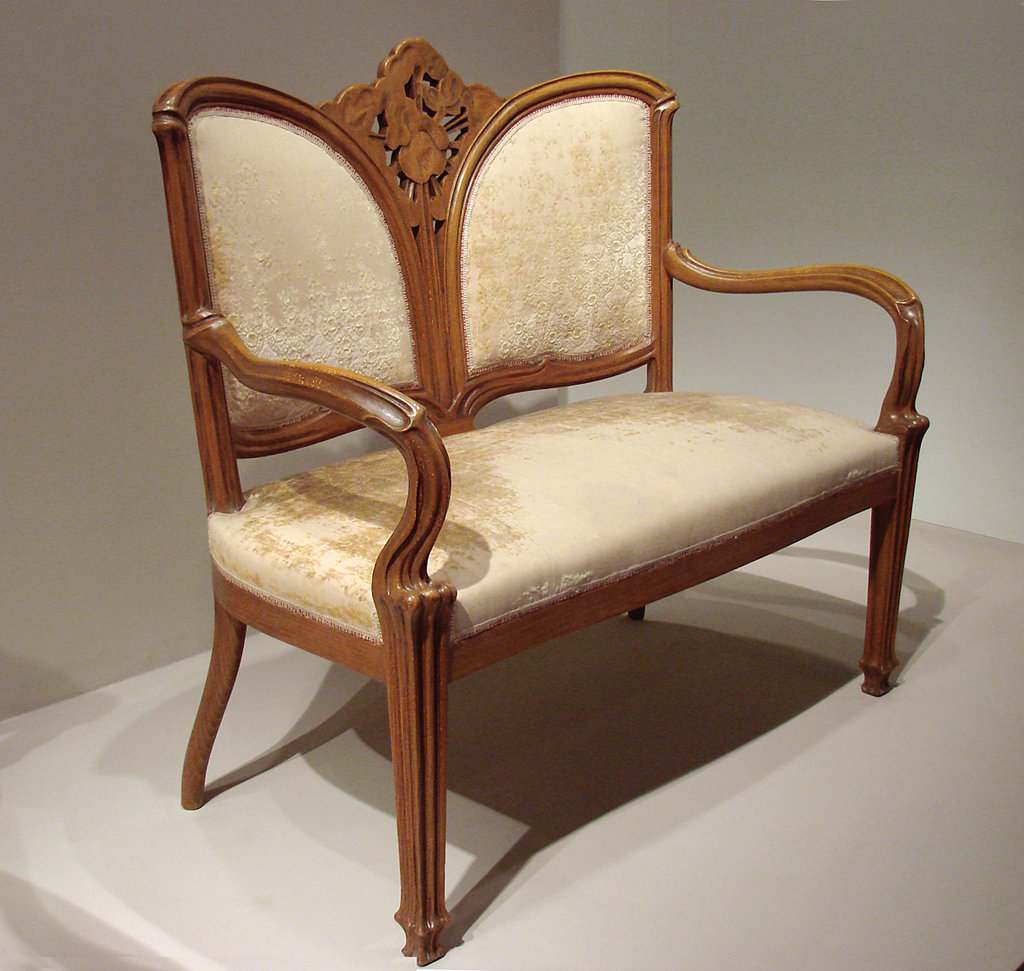 Мягкая мебель в стиле модерн используется в минимальном количестве и только с целевым назначением. Декоративные растительные формы, свойственные стилистическому направлению должны быть максимально выдержаны. Учитывая это, для оформления интерьера, как правило, используется мебель с минимумом обивочной ткани и доминирующей деревянной поверхностью. Поскольку мягкая мебель не является частью стиля, но имеет функциональное назначение в помещении и отказаться от нее невозможно, её необходимо камуфлировать, вписывая в общую цветовую гамму. Цвет текстиля выбирается под фоновые мягкие оттенки. Если в общем интерьере недостаточно мягких линий текстильная часть мебели может декорироваться однотонным извилистым рисунком мотивов флоры и фауны. В поверхностно-облегченном исполнении интерьера в стиле модерн можно использовать стандартизированную мягкую мебель с условием, что она будет иметь простые геометрические формы, грубую обивку, а так же приглушенные оттенки, сливающиеся с общим декором.